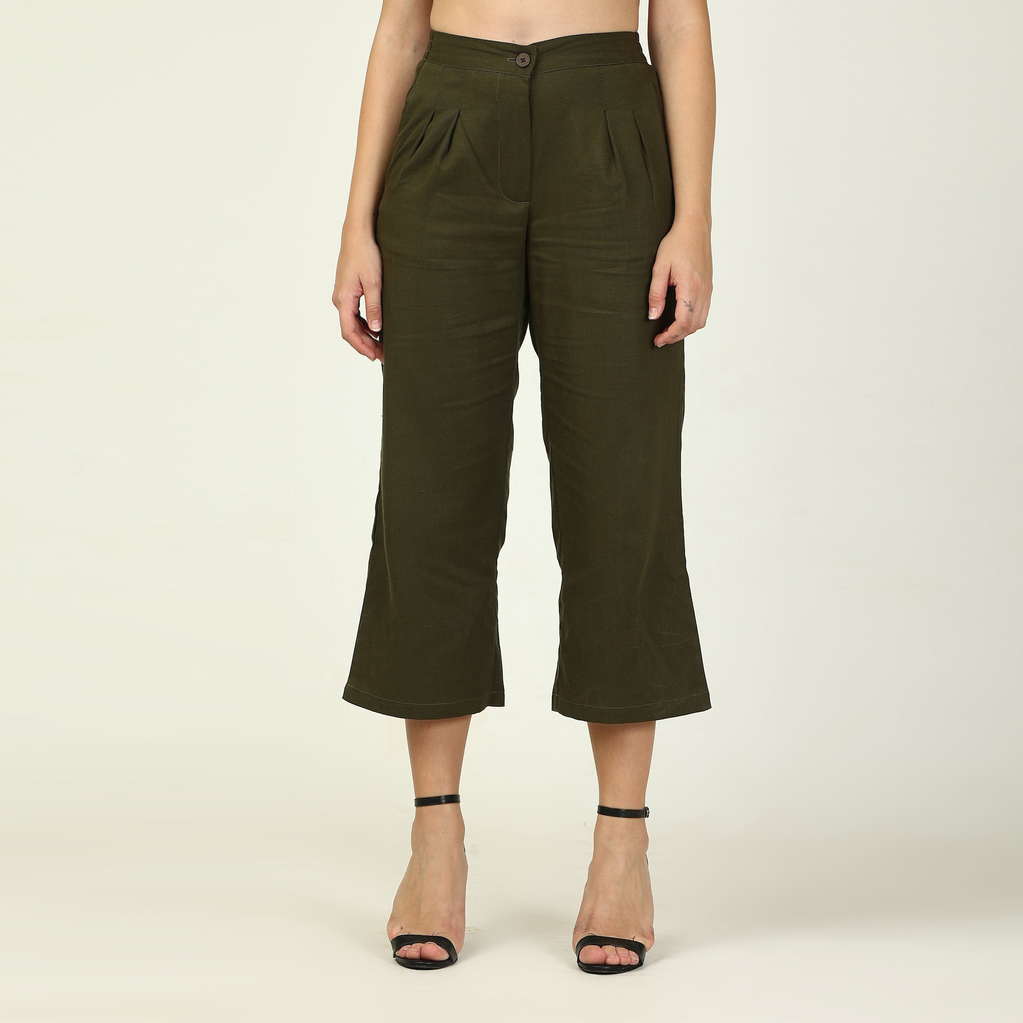 > A-line silhouette, sits at mid waist, widens through the leg and crops just above the ankle.