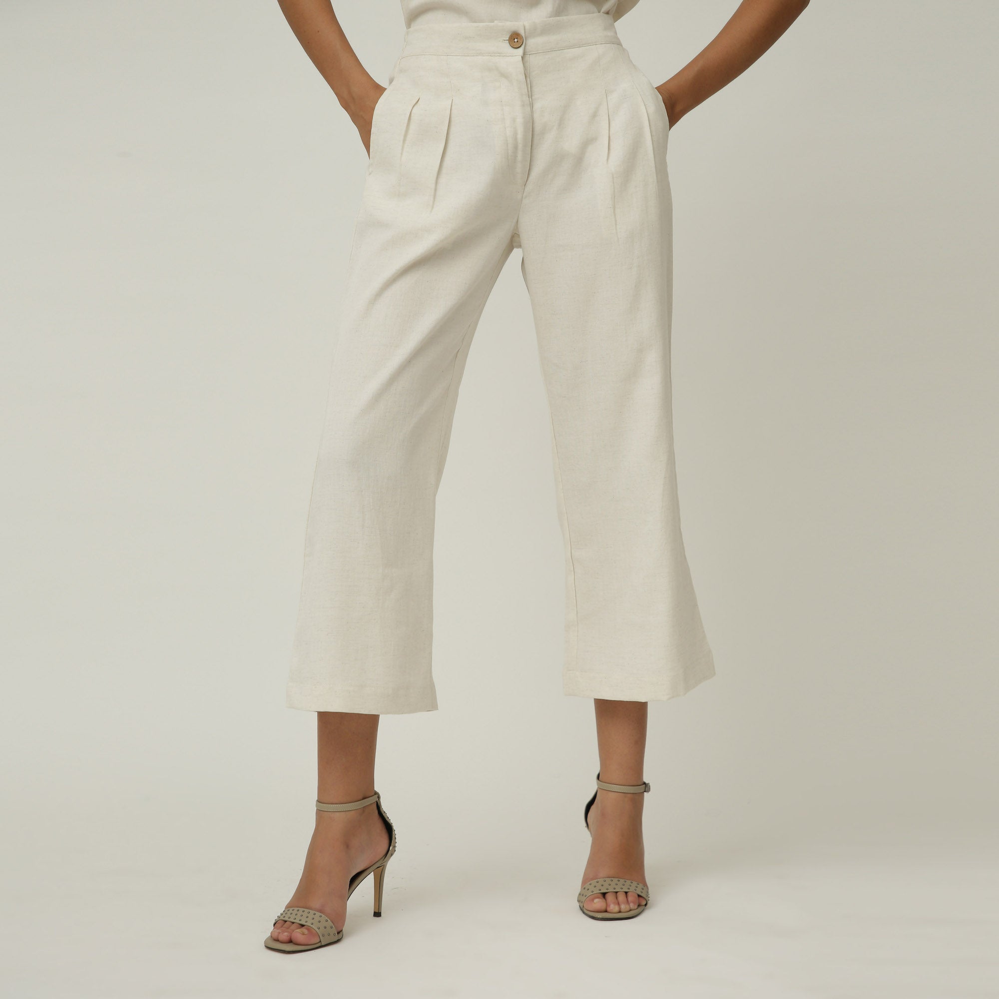 > A-line silhouette, sits at mid waist, widens through the leg and crops just above the ankle.