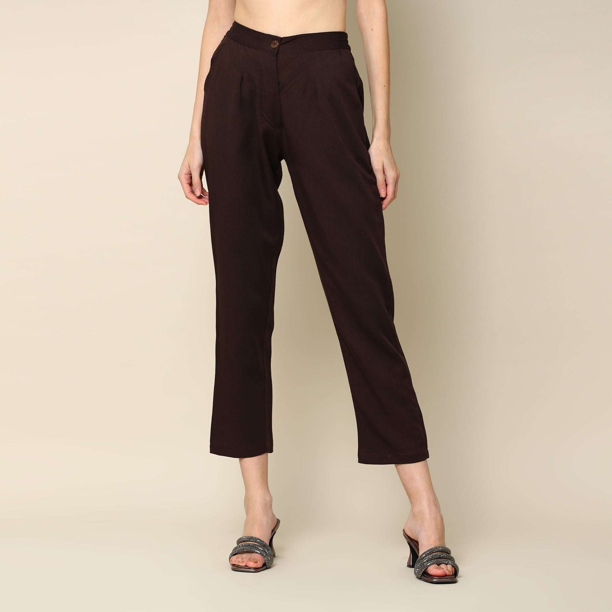 Tapered silhouette with elasticated waistband that sits at mid waist and crops just above the ankle.