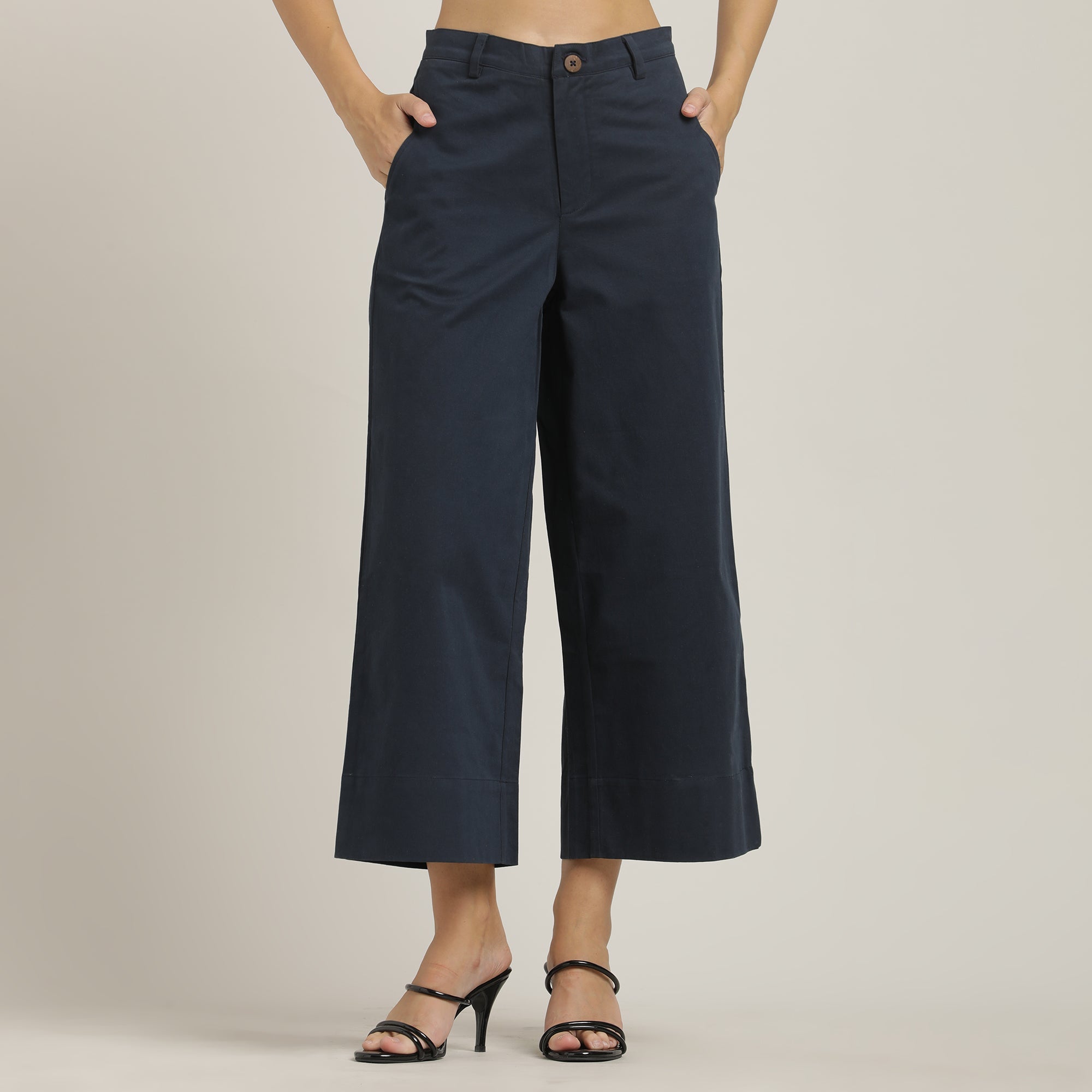 > Flat front, wide-leg cropped chinos