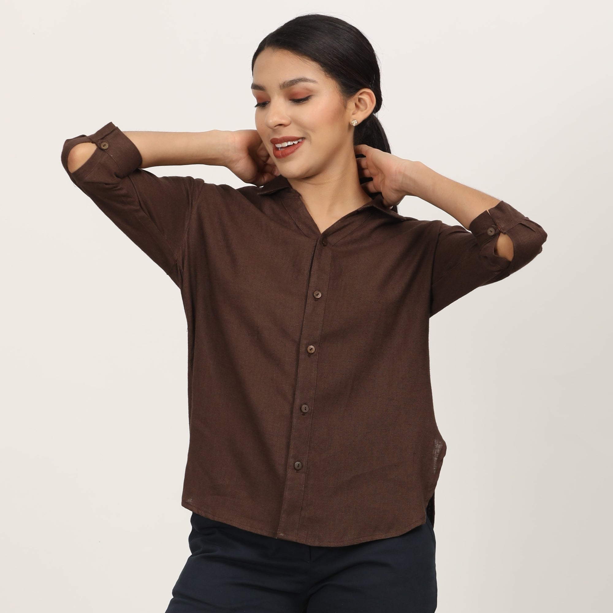 > The shirt is made from luxurious and silky smooth linen-modal fabric.